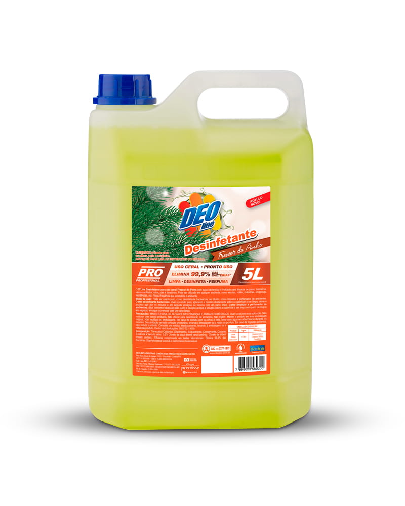 O Deoline Desinfetante Frescor de Pinho de uso geral é ideal para limpeza de pisos, paredes, corredores, banheiros, etc. Deixa o ambiente suavemente perfumado. Sua concentração facilita o transporte e a estocagem, podendo ser diluído conforme a necessidade.